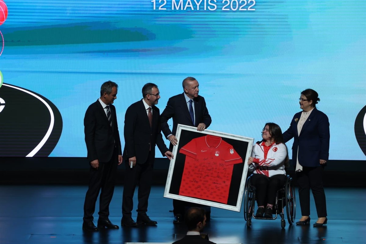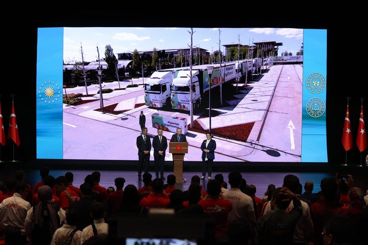 "Spor Aşkı Engel Tanımaz" Özel Eğitim Okullarına Spor Malzemesi Dağıtım Töreni, Cumhurbaşkanı Recep Tayyip Erdoğan’ın katılımıyla Cumhurbaşkanlığı Külliyesi’nde gerçekleştirildi. Törende, Cumhurbaşkanı Yardımcısı Fuat Oktay, Gençlik ve Spor Bakanı Dr. Mehmet Muharrem Kasapoğlu, Milli Eğitim Bakanı Mahmut Özer ile Aile ve Sosyal Hizmetler Bakanı Derya Yanık da hazır bulundu.